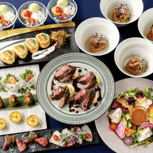 - お料理 【Appetizer】前菜4種盛り合わせ ・和牛生ハムで包んだカマンベール & キハダマグロのカルパッチョ ・魚介と香味野菜のセビーチェ ・牛たたきと厳選野菜の生春巻き ・ツナとポテトの一口タルト ~カレー風味~ 【Salad】 ・大山鶏のタリアータ サラダ仕立て 【Bread】 ・焼き立てパン2種 【Fish Dish】 ・サーモンとほうれん草のパイ包み ~サワークリームソース~ 【Main Meat Dish】 ・国産牛のサーロインステーキ ~赤ワインバルサミコソース~ 【Rice Dish】 ・焼きおにぎりのひつまぶし ~蛤の出汁~ 【Dessert】 ・ドルチェミスト(カッサータ・カタラーナ・ピスタチオアイス) ※仕入れ状況により内容が変更になる場合がございます